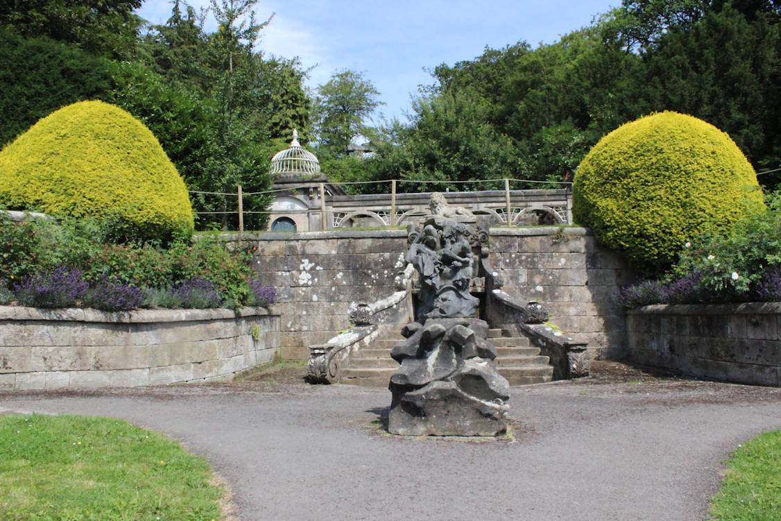As we proceed downwards into the Gardens, we are greeted on the left by a wall embedded with a rather unique fountain, made from stone and resembling the shape of a Talbot Hound’s head. This particular fountain is just one of the unique and meticulously thought out details that makes the Gardens so unique.