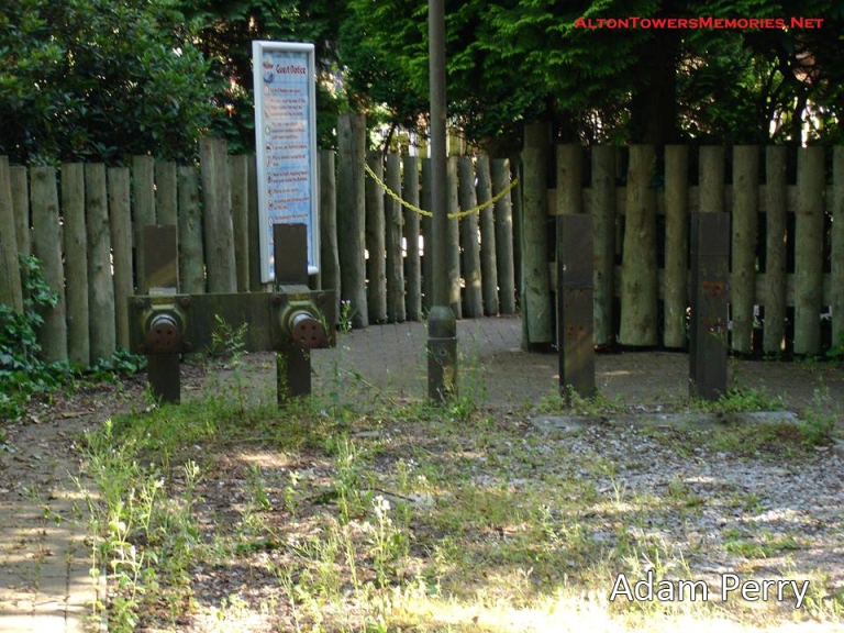 This double track formation was to be the railway’s final layout as it was decided at the end of the 1996 season that the benefits of a service through the gardens to the eastern side of the park were now outweighed by the operational and safety costs. The line was left operable, with the locomotives and rolling stock stored underneath the corrugated metal roof which was built in the cutting adjacent to the first drop of the log flume until 2000. It was at the turn of the millennium that it was decided that the railway was not going to open again and all of the stock and track was lifted and sold off.