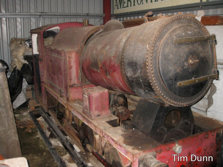 Towards the end of the railway’s life, Altonia was modified for two track operation through the fitting of a ‘deadman’ foot pedal and through braking, presumably a requirement to satisfy the growing requirement for strict health and safety in the park. After services were stopped at the end of the 1996 season, Altonia was left hidden, but still on the railway, only being run backwards and forwards occasionally to keep her in working order for a possible reopening . This revival never happened and eventually she was moved off track and was sold into the hands of a private collector in 2002, disappearing into store in Surrey for the second time in her seventy year life. Similarly to her situation at Alton Towers, Altonia was occasionally moved around to keep her in working order.