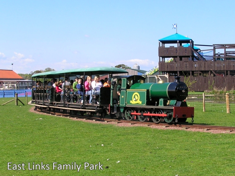 3014 was to move onto its third, and current, home at in 2000 when the East Links Family Park came looking for a locomotive to power their ‘Safari Train’. With a deal successfully negotiated 3014 and four coaches departed for their new railway in Scotland. Entering service in the same livery, albeit with a large East Links Family Park ‘The Express’ logo replacing the Alton Towers crest, she has continued to offer a passenger service around the park to many happy families.