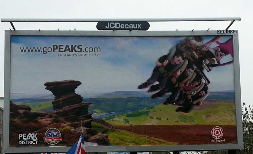 As well as the Annual Pass promotion, a team member also spotted a joint Alton Towers and VisitEngland billboard advertisement in Salford today advertising Alton Towers and the Peak District.
