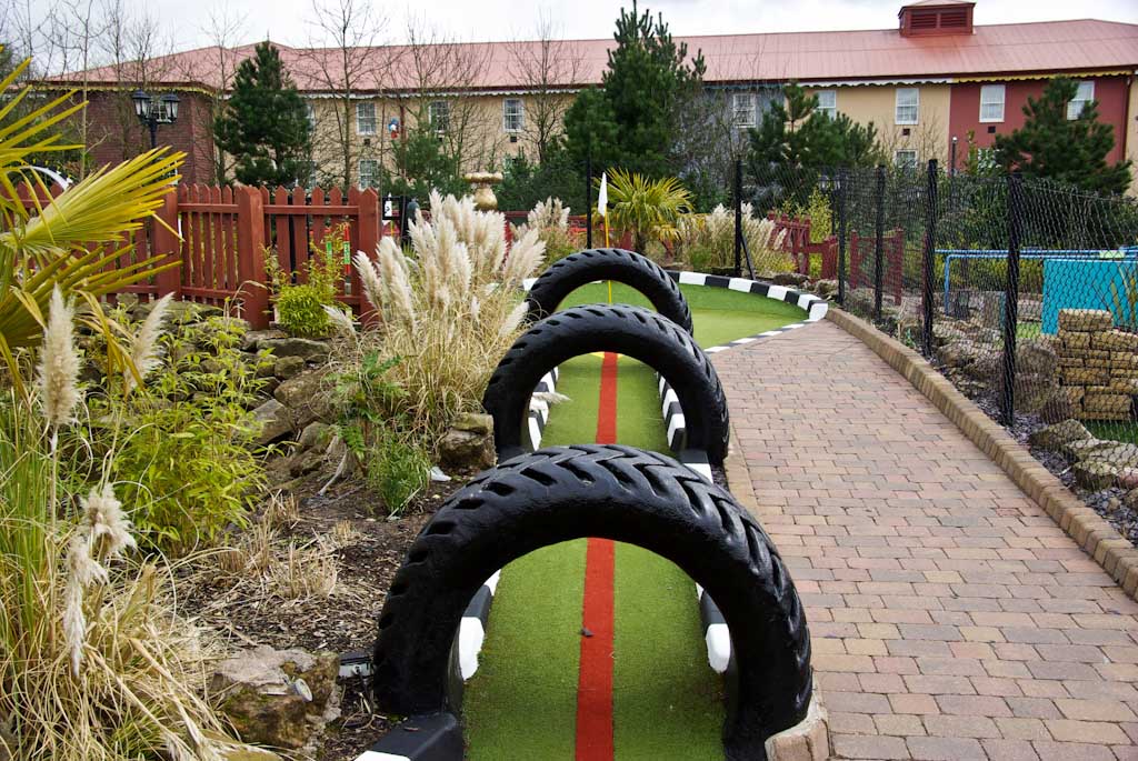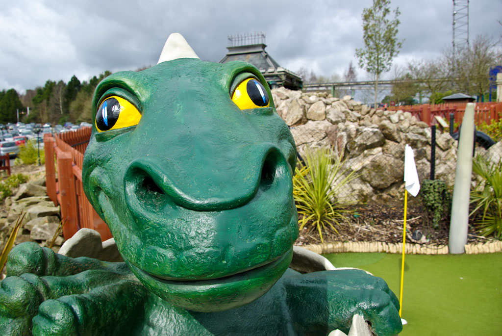 Extraordinary golf is located next to Splash Landings Hotel behind the car park Monorail station. The course is split into two separate areas; the East course, and the West course, each with a range of different holes to play, all themed around various Alton Towers attractions.