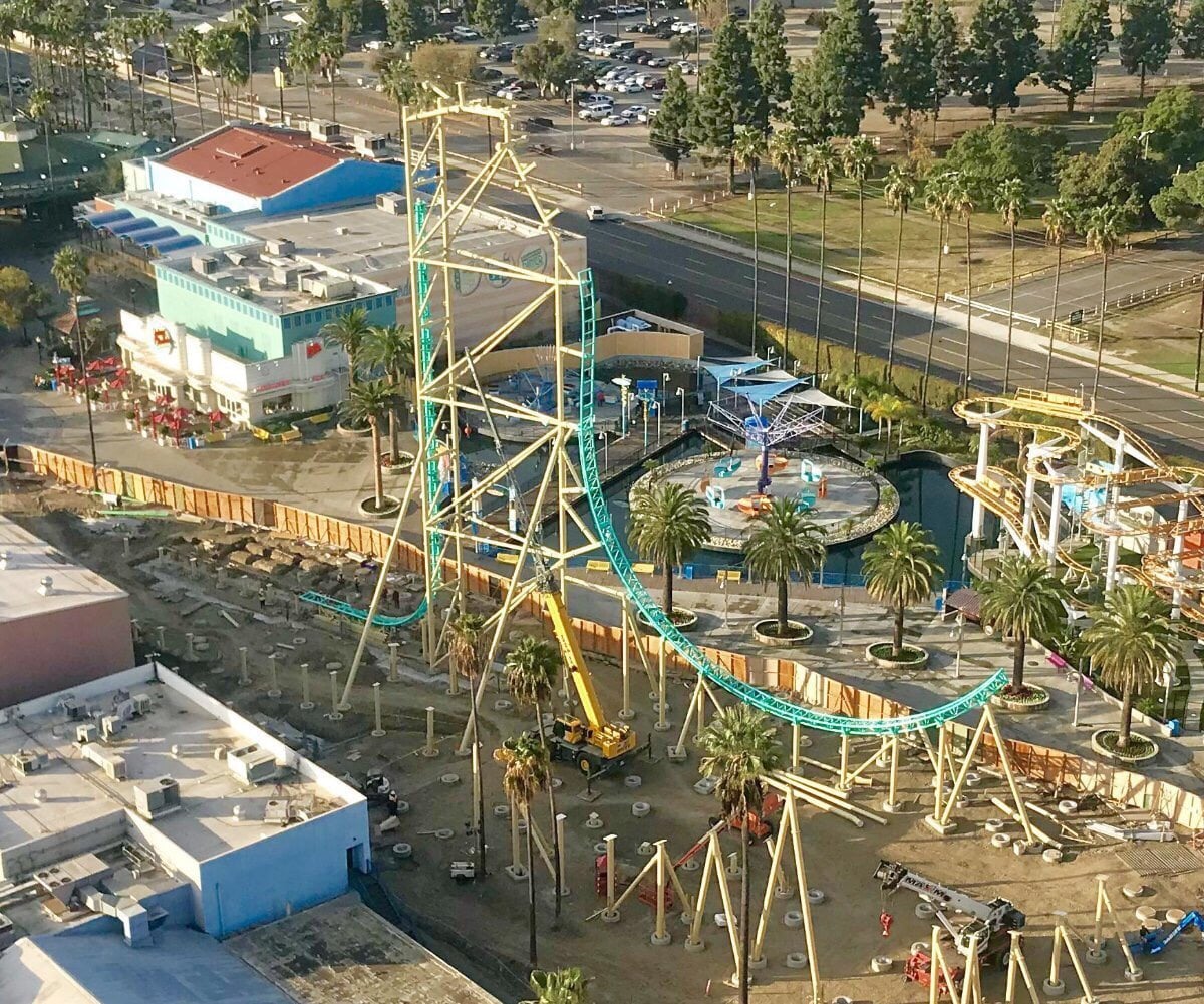 Marketed as the west coast's first dive coaster, this seems to be what happens when a Eurofighter and Infinity Coaster get a bit too close!